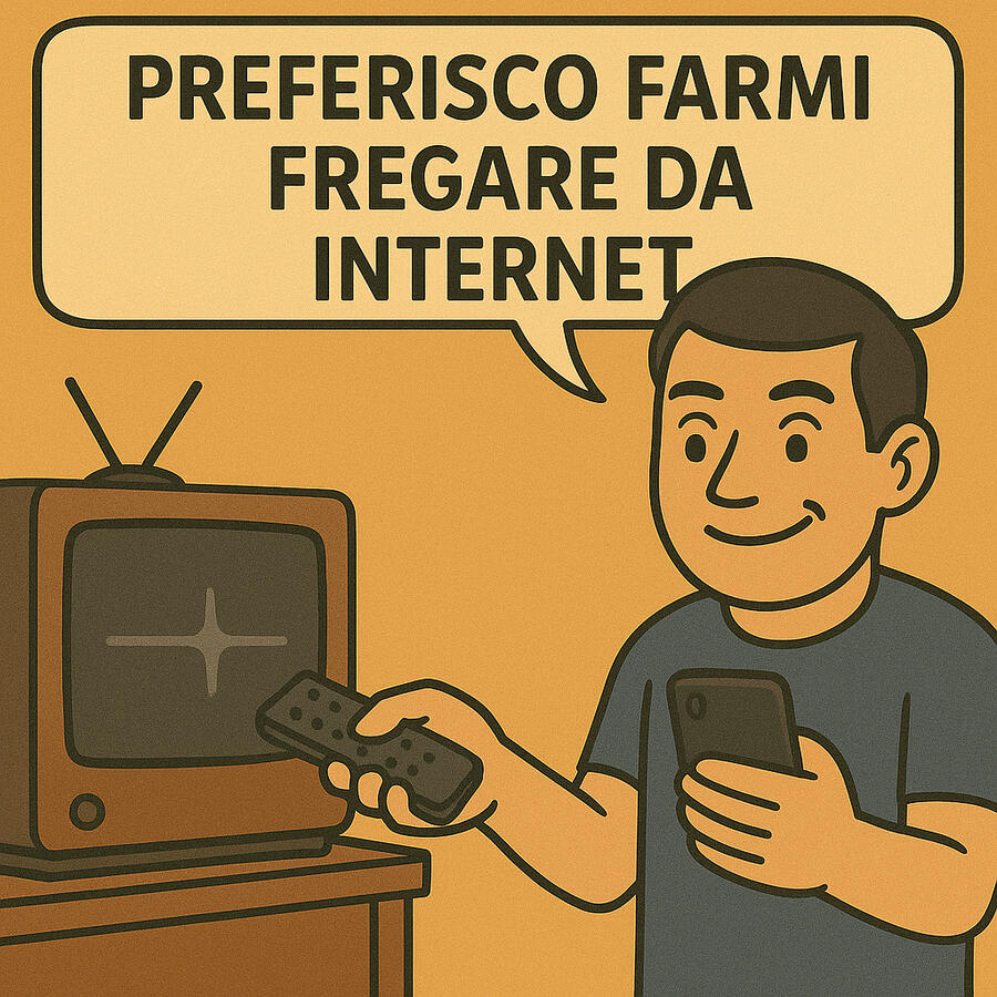 luglio 2025Molti non si fanno più fregare dalle cazzate che sentono alla televisione e iniziano a farsi fregare da quelle che girano su Internet: che incredibile passo avanti!È proprio così: molti pensano di svegliarsi solo perché cambiano canale. Magari si accorgono che la televisione spesso filtra le informazioni e le distorce e non si fidano più. Ma allora cosa