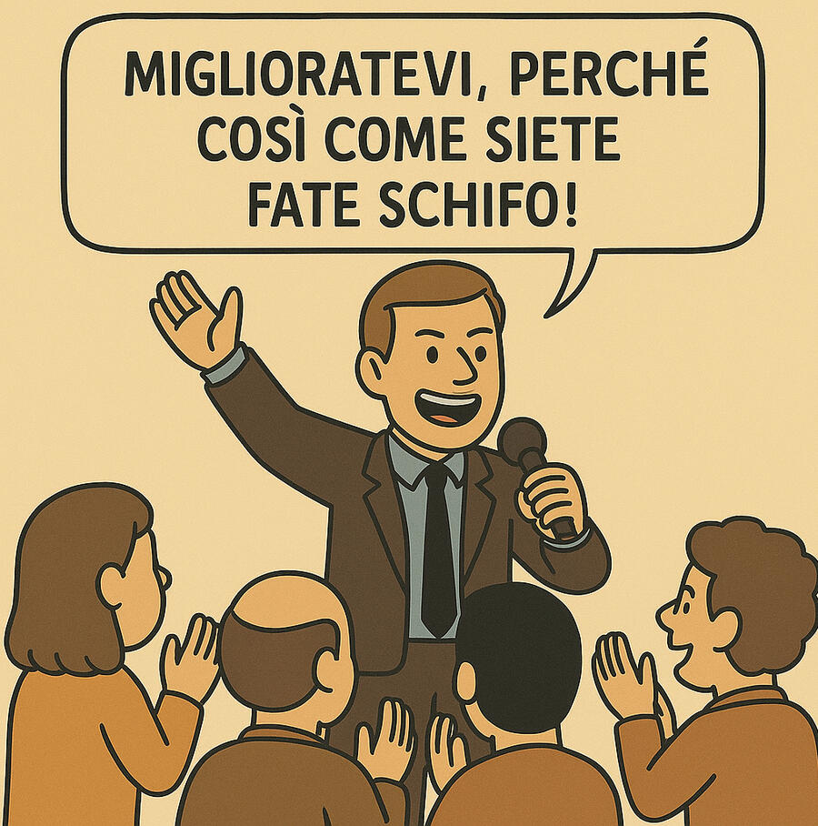 giugno 2025Uno degli inganni più subdoli della società di oggi è farci sentire costantemente insoddisfatti. Ci fa confrontare con modelli tossici, inarrivabili. Dal ragazzo che colleziona ragazze come fossero figurine, al fisico scolpito del bodybuilder dopato, al milionario di Dubai che vive di "rendite passive"...E noi ci facciamo fottere. Iniziamo a seguire anche noi quei modelli. Cerchiamo di diventare quel "sé ideale" che ci hanno propinato. Talmente ideale da esistere solo nella finzione, ma anche abbastanza reale da fotterci anni e anni della nostra vita, spesi a sacrificarci e a sentirci in colpa, frustrati, inadeguati.E spesso ci facciamo fottere anche il portafoglio.Infatti, i ladri di oggi non fanno più rapine a mano armata, non assaltano più le banche, non ti costringono con la forza ad aprire il portafoglio (a quello ci pensa già lo Stato). Al contrario, si tratta di gente rispettabile, in giacca e cravatta, che vende sogni. E molti di questi ladri sono stati fregati loro stessi da altri venditori di illusioni. E credono a quello che stanno facendo e alla fuffa che stanno vendendo.E cercano di convincerti che hai assolutamente bisogno dei loro prodotti o servizi, e tu ti aggrappi come se ti stessi salvando l'anima dalla dannazione eterna. E apri il portafoglio, pensando di poter eliminare così le tue insicurezze. Ma non fai altro che accrescere la tua sensazione di essere sbagliato, perché quella sensazione deriva dai modelli che hai accettato come un pirla, in cerca di un'identità non tua.E così, insegui il fisico dei tuoi sogni, che guarda a caso coincidono con i sogni di chi vuole venderti integratori o prodotti dimagranti, cerchi di diventare milionario, facendo diventare milionario chi ti vende corsi su come arricchirti in una settimana. Oppure ti fai truffare dal guru che ti vende il Nirvana come se fosse una pillola.Se vuoi del materiale per riflettere su tutto questo, potresti dare un'occhiata al mio libro di vignette bastarde. Ma se lo compri, aspettati di vedere distrutto tutto ciò in cui hai creduto finora.