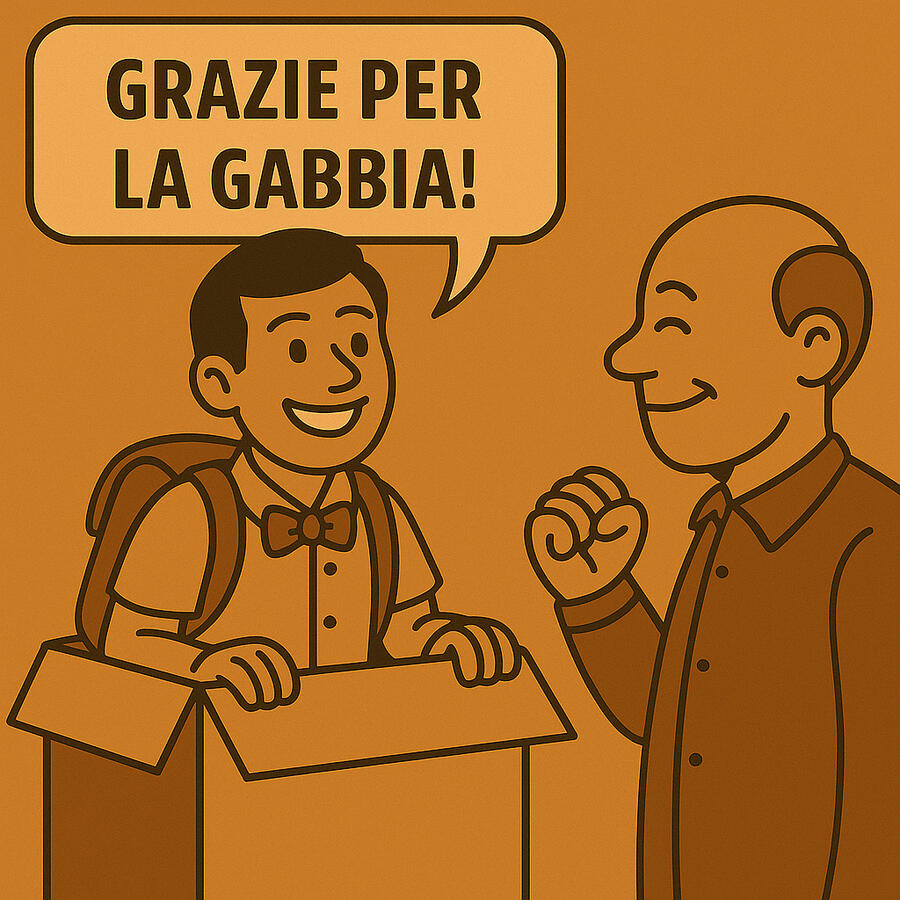 Altro che “futuro migliore”: è solo una gabbia d’oro col Wi-Fi.Parliamo della Sindrome di Stoccolma Educativa, quella maledizione per cui i figli sviluppano gratitudine verso chi li ha incatenati, perché li ha nutriti bene mentre gli metteva il collare.“Io ti ho dato tutto!” — dice il genitore.