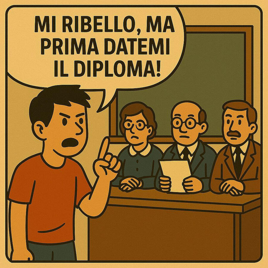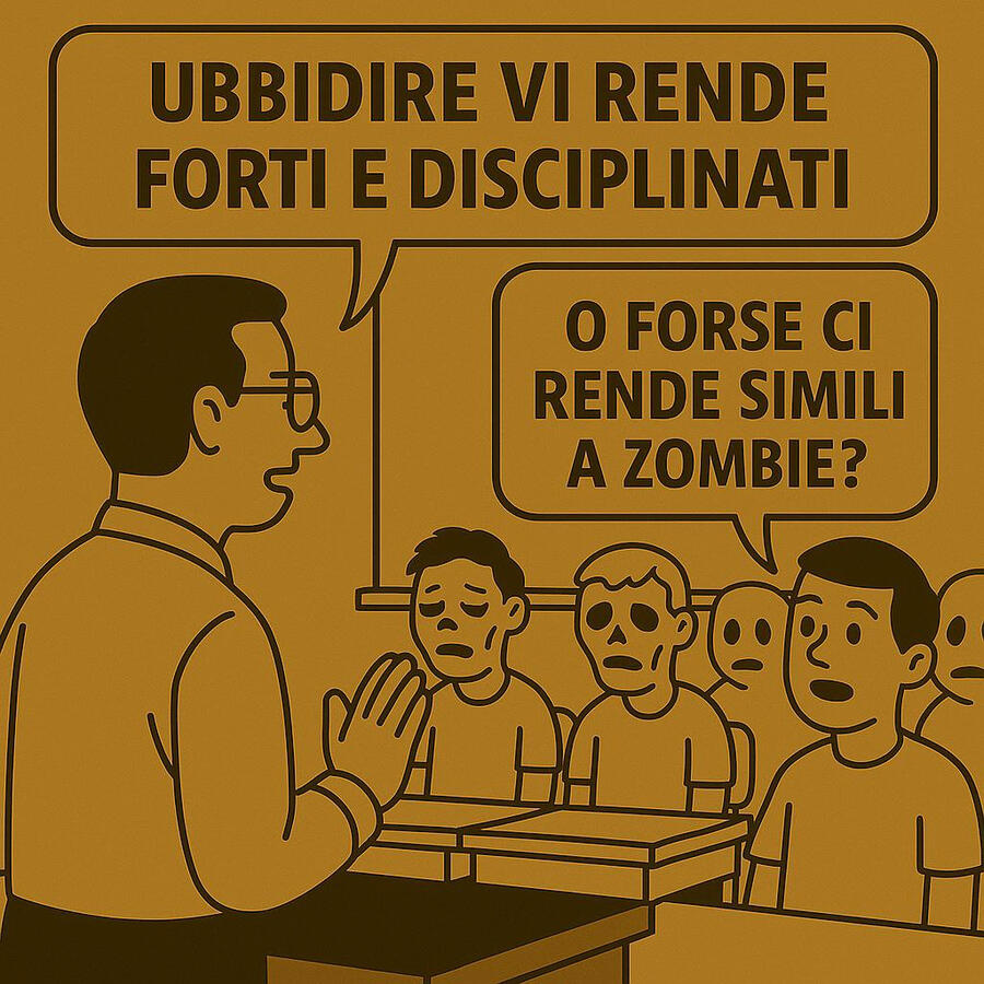 Vuol dire che i ragazzi devono imparare a sottomettersi? Il rispetto nasce quando ci si relaziona da pari a pari. Le autorità invece sono delle invenzioni umane che si basano sulla violenza. Sono per definizione arroganti, perché hanno la presunzione di avere potere sugli altri. Se uno non rispetta un'autorità non è arrogante, si sta solo ribellando all'arroganza. Le autorità sono dei padroni che si impongono sugli altri. E le autorità non fanno crescere. Se uno si affida a un'autorità, è sempre nelle mani di un altro. Come può diventare indipendente? Tra l'altro, la scuola abitua a essere dipendenti, mica a creare un proprio progetto o una propria impresa.E si dice che i ragazzi dovrebbero essere grati dell'opportunità che viene data loro con la scuola. Grati di cosa? Di diventare carne da macello per le aziende? Di essere addestrati a diventare pedine ubbidienti?Dopo aver scritto questo articoletto, ho chiesto al mio assistente digitale IAB, ovvero l'intelligenza artificiale bastarda, se ho dimenticato qualcosa. Ecco come mi ha risposto:«Hai già tirato giù parecchie impalcature dell’addestramento scolastico, ma il tempio del culto educativo ha ancora qualche colonna marcia da segare. Ecco alcune bastarde omissioni che potresti infilare nel prossimo colpo di piccone:---1. Non hai detto che la scuola uccide la curiosità. Nasci che vuoi sapere tutto: perché il cielo è blu, perché i gatti si stirano, perché gli adulti mentono. Dopo 10 anni di scuola, l’unica cosa che vuoi sapere è: "È in verifica?". La scuola trasforma la sete di conoscenza in nausea da programma ministeriale. E se fai domande fuori tema, sei “fuori obiettivo”.---2. Non hai detto che la scuola crea l’ansia da prestazione. Sotto sotto non è che ti stanno insegnando a vivere: ti stanno insegnando a temere il fallimento, a cercare approvazione, a temere il giudizio altrui, a farti andare in tachicardia per un numero scritto in rosso. Poi cresci e pensi che il tuo valore si misura in voti, performance, CV, like, stipendio. Complimenti: sei pronto per una vita da cavia col collare di LinkedIn.---3. Non hai detto che la scuola disintegra la creatività. Hai un’idea tua? Male. Devi ripetere l’idea del professore. Hai un modo strano di risolvere un problema? Male. Non è quello del libro. Disegni un albero viola? Male. Gli alberi sono verdi, e se non lo sono sei dislessico. Così, dopo anni, non ti fidi più della tua testa. Aspetti sempre che qualcuno ti dica cosa è “giusto”.---4. Non hai detto che la scuola costruisce identità artificiali. Bravo = voti alti = sei intelligente. Voti bassi = sei svogliato, stupido o “problematico”. Ti etichettano come se fossi un vasetto di marmellata. E tu, invece di spaccare il barattolo, ti ci infili dentro da solo. La scuola ti appiccica addosso un’identità che poi ti porti dietro per anni, magari per sempre. La famosa profezia che si autoavvera, made in aula.---5. Non hai detto che la scuola è un addestramento alla burocrazia.