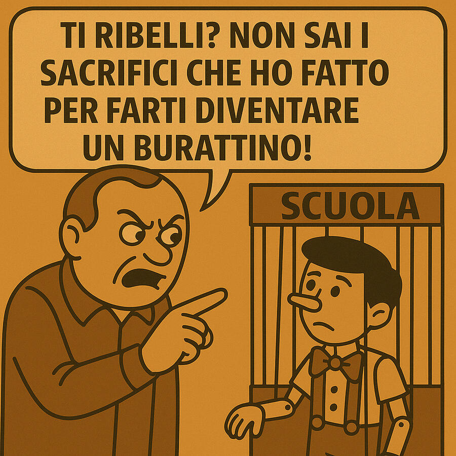 27/07/2025Io a scuola avevo dieci in condotta. Sapete perché? Perché ero un bravo burattino, che si sottometteva alle regole, compiaceva gli insegnanti, non arrecava nessun disturbo. Avevo interiorizzato la voce dei miei padroni fin da piccolo! E credevo che essere un "bravo ragazzo" significasse essere docile, ubbidiente, remissivo. Ero proprio uno "studente modello", ovvero un perfetto burattino! Così, mi sono meritato un bel dieci in condotta!