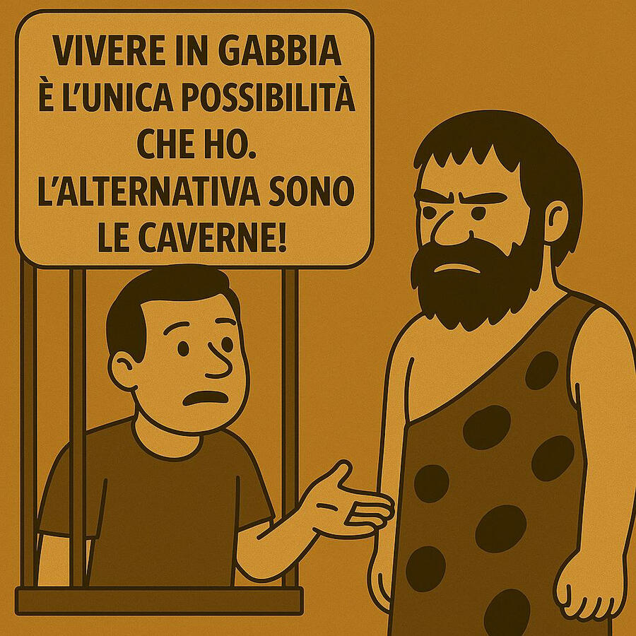 11/07/2025Se sempre più persone si svegliano, possiamo unire le coscienze e diffondere la nostra consapevolezza per avviare una rivoluzione interiore, che poi può portare anche a una trasformazione radicale della società. Ma un attimo! Non intendo certo creare un'organizzazione o un'associazione! Semplicemente, ritengo che in piena libertà ciascuno possa dare un supporto per diffondere consapevolezza.Potrebbe nascere anche una "rete" di persone che si supportano a vicenda. Per esempio, uno può vendere il materiale di un altro in cambio di una percentuale.E chissà, magari potrà nascere un'economia alternativa, basata sul baratto o sul dono... Ad esempio, uno potrebbe offrire un libro a un altro e l'altro in cambio si offre di fare un piccolo lavoretto per lui come risolvergli un problema sul computer. O addirittura, uno potrebbe decidere di fare dono di qualcosa senza volere nulla in cambio, e magari anche gli altri vorranno donargli qualcosa in futuro... e così si crea una nuova economia basata sul dono.Ma soprattutto, si possono coordinare gli sforzi per diffondere consapevolezza, si possono condividere progetti e idee, si può dialogare insieme per arricchire la propria interiorità...E il bello è che si può fare tutto senza obblighi di alcun tipo. Ognuno fa liberamente ciò che si sente di fare, dà il suo piccolo o grande contributo, e se la cosa non gli va più, se ne va, senza dover firmare nessun contratto di rescissione, senza dover notificare a nessuno che non vuole più prendere parte al progetto.Così, uniamo le coscienze, ma allo stesso tempo rimaniamo liberi. E possiamo davvero fare una "rivoluzione". Non una rivoluzione con le armi. Oppure sì, con l'arma delle nostre menti. E non abbiamo bisogno di manifestazioni in piazza. Magari qualche volta potrà capitarci di fare un gesto simbolico da qualche parte, ma noi non protestiamo contro nessuno, perché non chiediamo urlando la nostra libertà, non vogliamo che ci diano "diritti", non abbiamo nessun padrone a cui chiedere. I padroni siamo noi. E vogliamo che ognuno torni a essere padrone di se stesso.Vogliamo che ognuno diventi l'autorità di se stesso, maestro di se stesso, e così facendo possa ispirare anche gli altri. Nessuno seguirà nessun altro. Ciascuno seguirà solo se stesso. Semmai, si dialogherà per offrirsi spunti a vicenda, sviluppare nuove prospettive e crescere insieme. E possiamo sfruttare la tecnologia per metterci in contatto, lavorare insieme, o anche solo per condividere riflessioni. Magari potrebbero nascere anche dei bei rapporti personali. Ciò che conta è che qui c'è la massima libertà.E noi non mettiamo in testa le nostre idee agli altri, non vogliamo convincere nessuno, non vogliamo convertire nessuno. Tra l'altro, non abbiamo nessuna ideologia. Ognuno semplicemente ha le proprie opinioni e può condividerle con gli altri. E queste opinioni si possono evolvere.Un nostro pilastro è la maieutica: anziché convincere gli altri delle nostre verità, lasciamo che ciascuno tiri fuori le sue. All'inizio magari tirerà fuori le sue idee condizionate, poi verranno fuori delle idee sempre più limpide. E potremmo notare che alla fine le nostre verità coincidono, perché gli svegli vedono la stessa realtà! Ma magari uno vedrà la stessa realtà da una prospettiva un po' diversa, e potrà così arricchire la prospettiva degli altri. E in questo modo possiamo arrivare a una verità condivisa sempre più ricca. E per tutto questo sarà fondamentale il dialogo, il confronto, il mettere in discussione se stessi e gli altri. Ognuno si fiderà del proprio sentire, ma allo stesso tempo sarà aperto a quello degli altri e lo sottoporrà al proprio giudizio.Da tutto questo può emergere un individuo che sviluppa al massimo tutte le proprie risorse, il proprio pensiero critico, la propria facoltà di giudizio, la propria capacità di vedere la realtà, la propria capacità di relazionarsi con gli altri, di ascoltare se stessi e di ascoltare gli altri, di mettere in discussione i condizionamenti, di affrontare problemi e trovare soluzioni... E la filosofia bastarda è proprio uno strumento per sviluppare al massimo queste capacità. E uno può utilizzare questa filosofia su se stesso ma anche sugli altri. E la filosofia bastarda non è altro che l'arte di smascherare i condizionamenti, mettere in discussione convinzioni, aprirsi a nuove prospettive, esplorare dentro di sé e guardare la realtà con occhi limpidi... tutto con il potere delle domande e grazie alla condivisione di spunti maieutici.Un esempio di spunti maieutici sono le mie vignette bastarde, che potete trovare su Amazon. Con ironia pungente e provocatoria le vignette smascherano gli inganni e i miti della nostra civiltà e invitano a riflettere per liberarsi dai condizionamenti. Ogni vignetta è uno stimolo per interrogarsi, mettere in discussione le proprie convinzioni, elaborare riflessioni, attivare le proprie risorse interiori... e in questo modo ripulirsi dalla spazzatura che ci hanno ficcato in testa fin da piccoli e così tornare a essere liberi e a svilupparci interiormente.