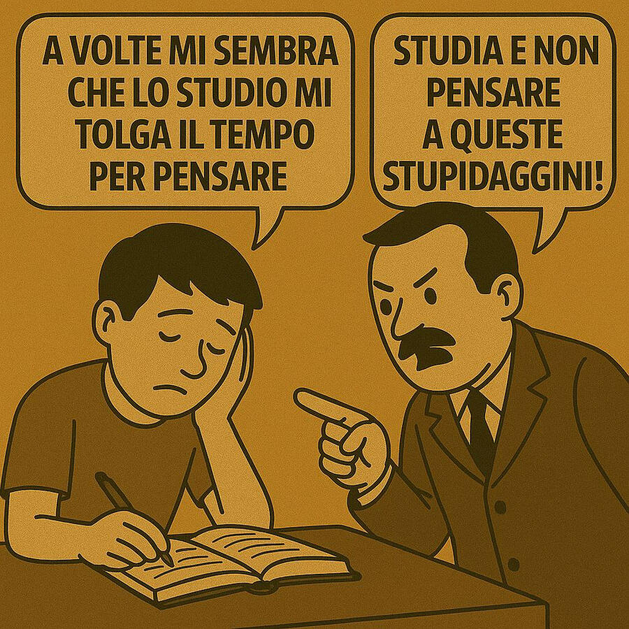 luglio 2025Molti dicono che la scuola prepara alla vita. Sì, certo, se si intende che prepara a fare gli schiavi di qualche azienda, sono perfettamente d'accordo (e non fa bene neanche quello!).Ma se si intende che fa maturare gli individui, proprio non sono d'accordo. Semmai, direi che blocca il loro sviluppo.La scuola abitua ad affidarsi a delle autorità, ovvero ad avere padroni a cui ubbidire e sottomettersi. E questo è proprio il contrario di ciò che serve a un ragazzo per diventare indipendente. Gli insegnanti interrogano, giudicano, mettono i voti. Così i ragazzi imparano ad affidarsi al giudizio degli altri invece che sviluppare il proprio.La scuola uccide la fiducia in sé stessi, perché insegna a fidarsi di qualcun altro. E crea ansia, perché si insegna che qualcun altro ha potere di decidere il tuo valore con un voto.