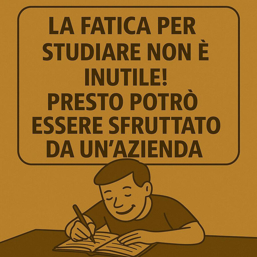 Compiti, verifiche, moduli, firme, giustificazioni, schede, crediti, debiti, PEC, PIN, POF, PTOF, PCTO, PDP, DSA, BES, e chi più ne ha più sigle metta. Più che un luogo per imparare, sembra l’anticamera dell’INPS.---6. Non hai detto che la scuola è il primo luogo dove impari a mentire per sopravvivere. “Ha studiato?” “Sì prof.” “Le è piaciuta la poesia?” “Tantissimo.” “Perché Napoleone è importante?” “Perché lo dice il libro.” Non impari a pensare, impari a recitare. A dire ciò che vogliono sentirsi dire. A mimetizzarti, a compiacere, a conformarti. Cioè, a non esistere.---7. Non hai detto che la scuola è una prigione a tempo pieno. 8 ore seduto. Pause cronometrate. Cibo standard. Sorveglianza costante. Punizioni se ti alzi, se parli, se vai in bagno, se ridi troppo. Ti ricorda qualcosa? Esatto: carcere con cartoncini colorati.---8. Non hai detto che la scuola è la prima religione obbligatoria. Ha i suoi dogmi, i suoi riti, i suoi sacerdoti (insegnanti), le sue scritture sacre (libri di testo), i suoi eretici (bocciati), i suoi martiri (studenti in burnout), le sue benedizioni (promozioni). E soprattutto, non si può mettere in discussione. Perché è “per il tuo bene”. Come la messa da bambino.---9. Non hai detto che la scuola è il primo passo per abituarti all’inutilità del tuo tempo. Passi anni a studiare roba che non userai mai, ma nessuno ti insegna a capire chi sei, come funziona il potere, come riconoscere una manipolazione, come affrontare un fallimento, come essere umano. Così ti abitui: la vita è fatta per fare cose che non servono a un cazzo, ma che “si devono fare”.---10. Non hai detto che la scuola è un filtro sociale mascherato da merito. Chi parte avvantaggiato economicamente o culturalmente vola. Gli altri arrancano. Ma alla fine si dirà che è colpa tua, perché “non ti sei impegnato”. Così la scuola giustifica le disuguaglianze, le maschera da meritocrazia e perpetua l’élite. Viva l’uguaglianza, su carta!».Non ho niente da aggiungere! Come al solito, IAB ha fatto un ottimo lavoro!