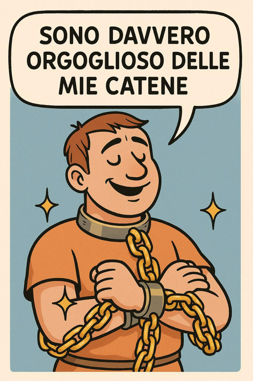 11/07/2025Io ho fatto il soldatino diligente, ho preso il massimo dei voti sia al diploma sia alla laurea!Potrei benissimo difendere i miei pezzi di carta, parlare dall'alto della mia laurea e dire: "Guardate che bravo schiavo sono stato!"Ma per me i miei pezzi di carta hanno davvero poco valore.Potrei inviarli a qualche azienda per dire: "Guardate come mi hanno reso docile e ubbidiente per farmi sfruttare!"Ero rimasto fregato per bene, ma almeno alla fine dell'università mi avevano promesso che avrei potuto inviare curriculum o fare concorsi per fare lo schiavo di qualche azienda o in un posto statale!Avevo smesso di credere alla laurea, ma mi ero detto: "Ormai questo percorso lo devo finire perché ho preso l'impegno. E i miei genitori hanno fatto sacrifici per pagarmi la gabbia, quindi mi laureo".Così, mi sono laureato con centodieci e lode. Ma per me è solo un pezzo di carta con un numeretto sopra.Anzi, quel centodieci e lode è il simbolo di quanto mi sono piegato e ho ubbidito come un perfetto schiavo. Quindi me ne vergogno.Mi pento di quel centodieci e lode. Avrei potuto dare di meno. Oppure avrei potuto evitare di sostenere il colloquio di laurea, come il ragazzo di Padova che ha evitato il colloquio di maturità.Ma avevo deciso di piegare il capo. Non per umiltà o rispetto delle istituzioni, ma perché sono stato un pirla. Ma anche un po' codardo.E comunque adesso comprate il mio libro di vignette, altrimenti devo andare a lavorare in una gabbia!O forse è giusto che anch'io faccia il bravo schiavo e mi spezzi la schiena per arricchire un padrone di azienda e permettergli di comprare una bella macchina?In fondo, se tutti fanno gli schiavi, perché io dovrei avere la presunzione di essere libero?